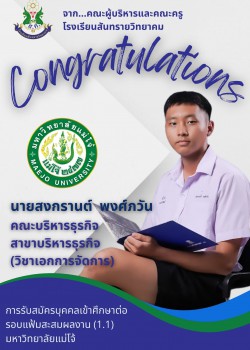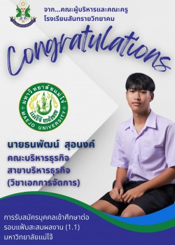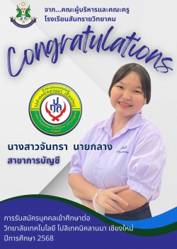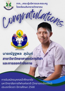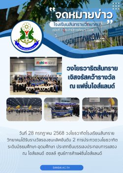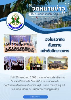 - ประกาศ ผลการสอบคัดเลือกนักเรียนเข้าศึกษาต่อโรงเรียนสันทรายวิทยาคม ชั้นมัธยมศึกษาปีที่ 1 และ 4 ปีการศึกษา 2568