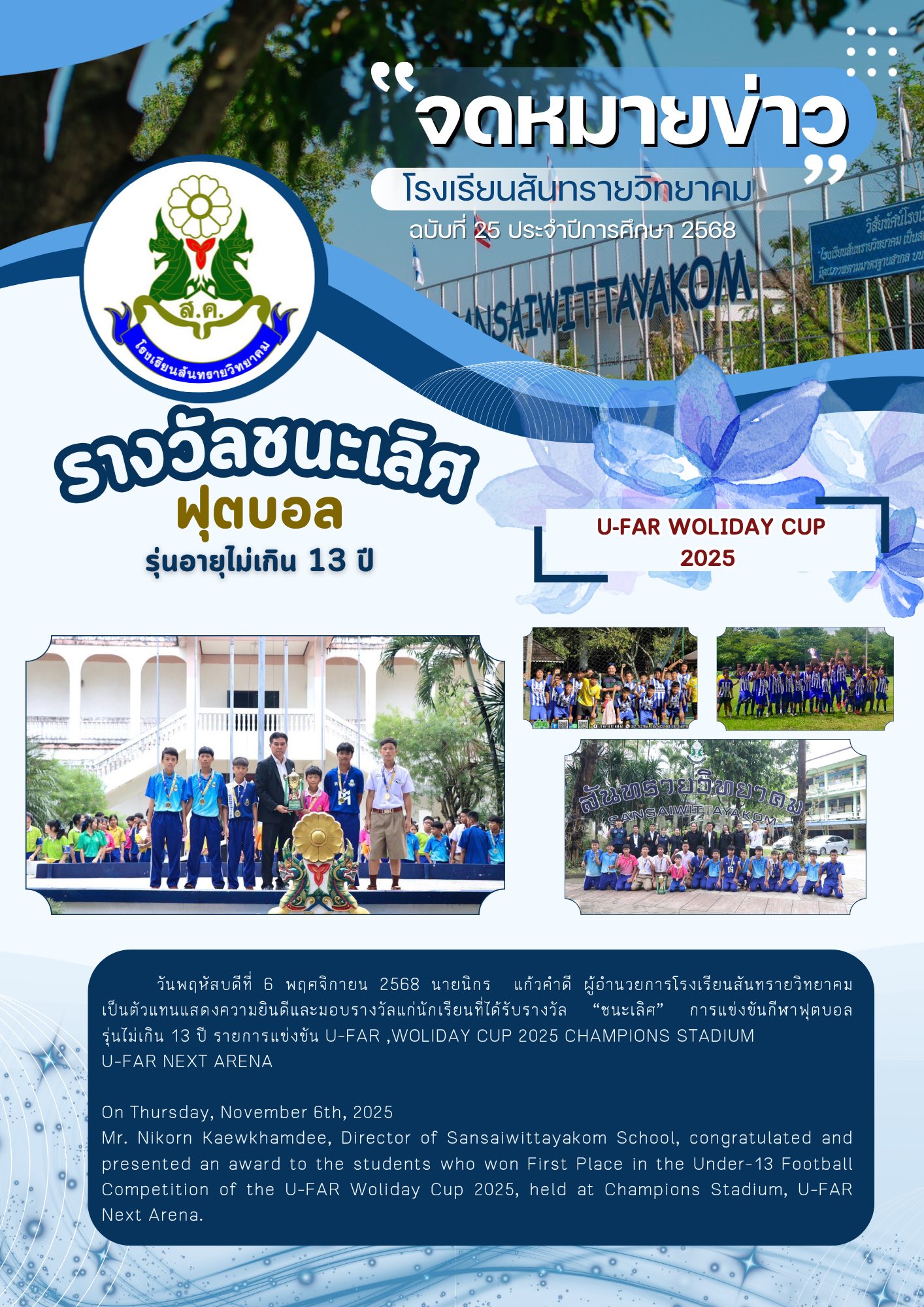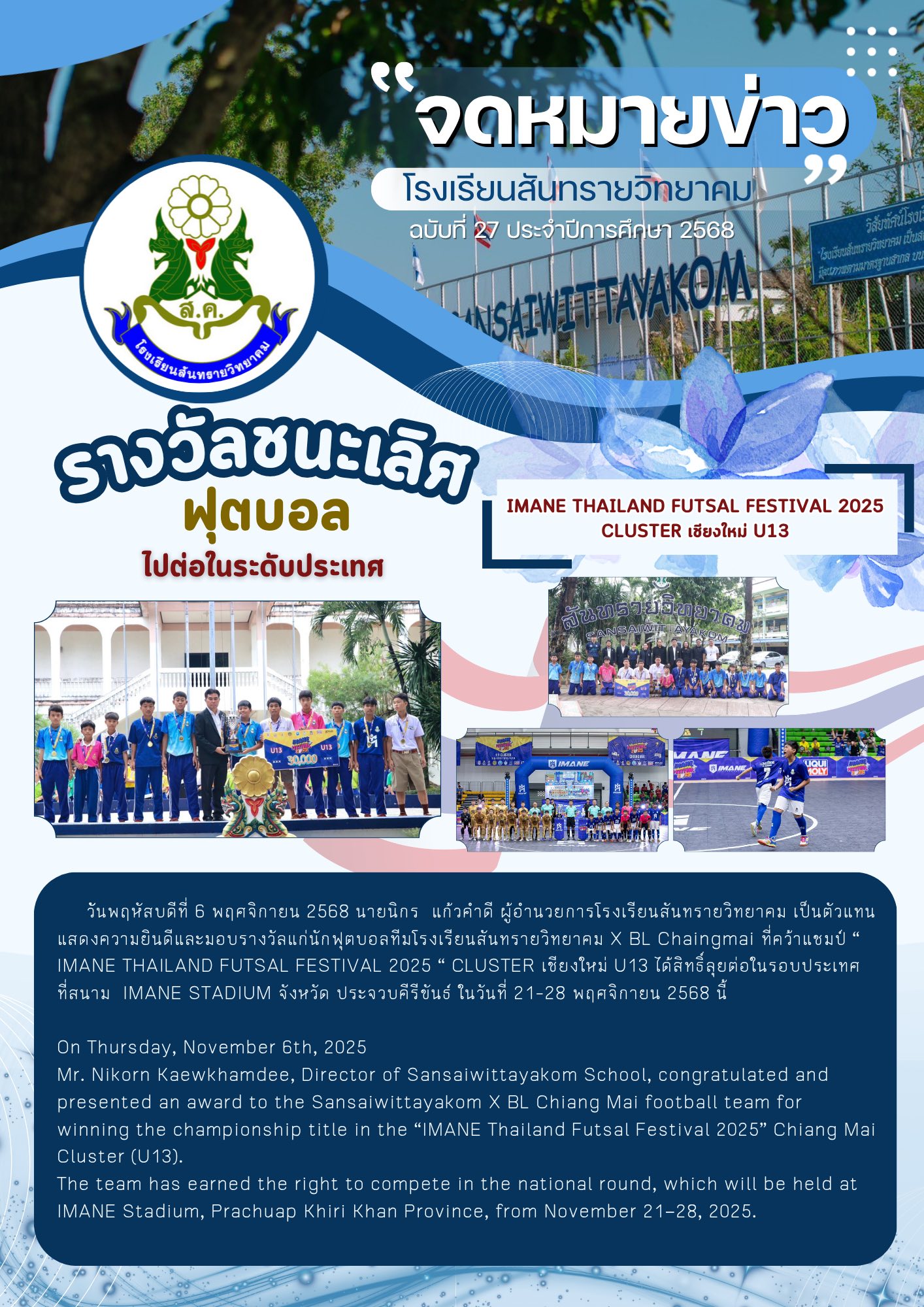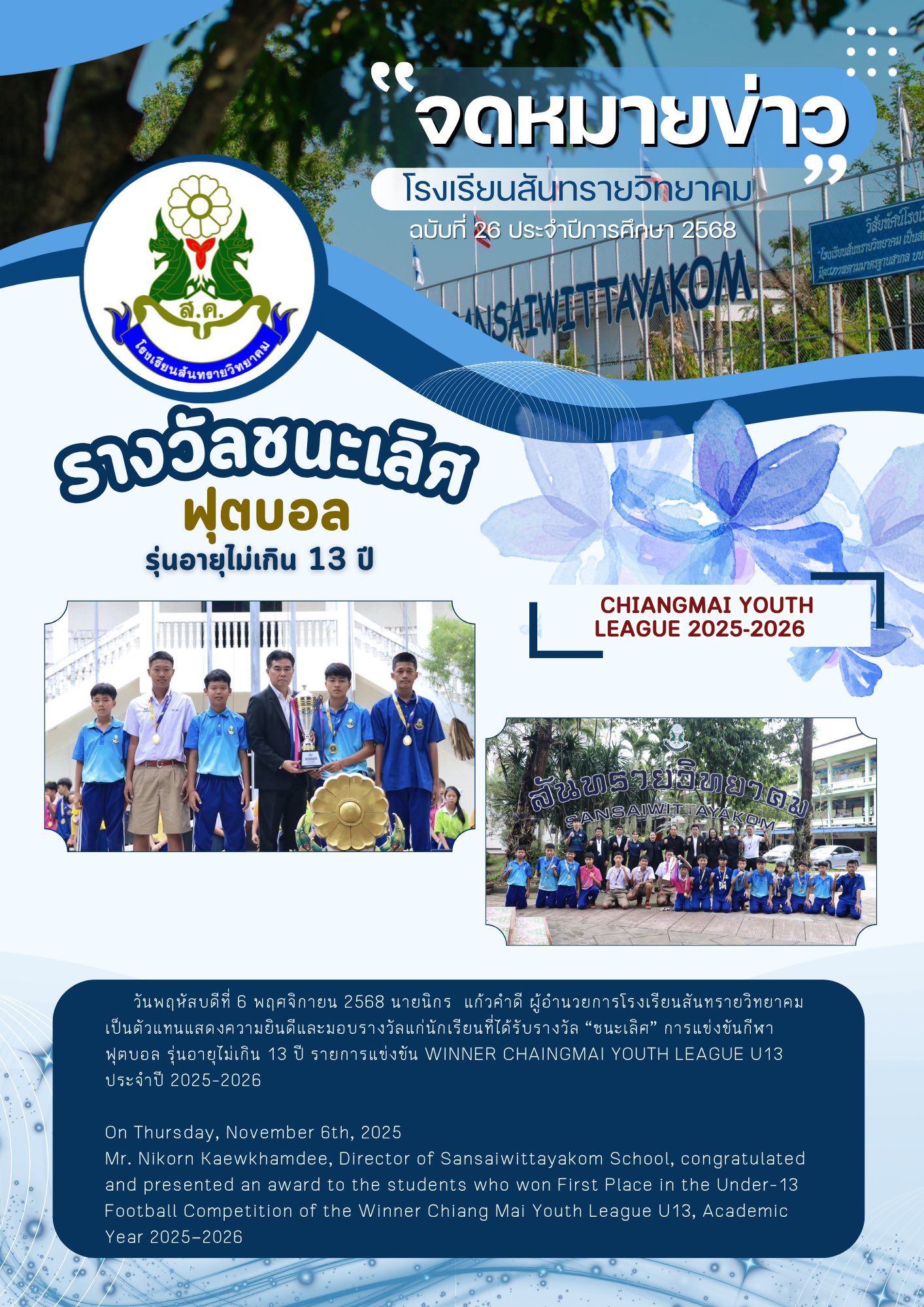- ประกาศ เลื่อนการสอบคัดเลือกนักเรียนเข้าศึกษาต่อโรงเรียนสันทรายวิทยาคม ปีการศึกษา 2568