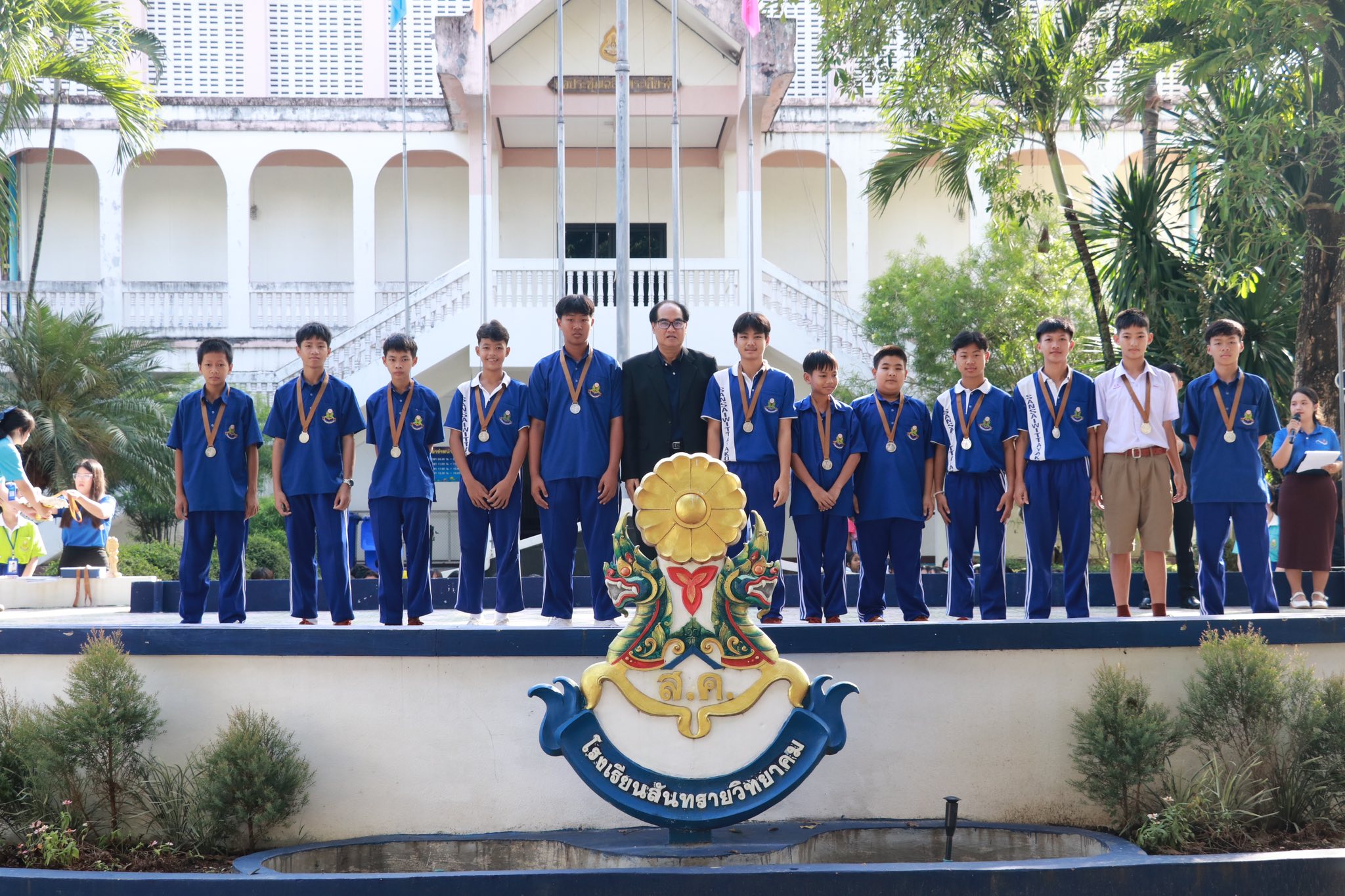 วันพุธที่ 3 กันยายน 2568 นายเนรมิต ใจแก้ว รองผู้อำนวยการโรงเรียนสันทรายวิทยาคมเป็นตัวแทนแสดงความยินดีและมอบรางวัล แก่นักเรียนที่ได้รับรางวัล “รองชนะเลิศอันดับ 1” ในการแข่งขันกีฬาวอลเลย์บอลในร่ม รุ่นอายุไม่เกิน 14 ปี ชาย ระหว่างวันที่ 25-31 สิงหาคม 2568 เนื่องในการแข่งขันกีฬานักเรียนนักศึกษา ประจำปี 2568 ณ โรงเรียนสันป่าตองวิทยาคม