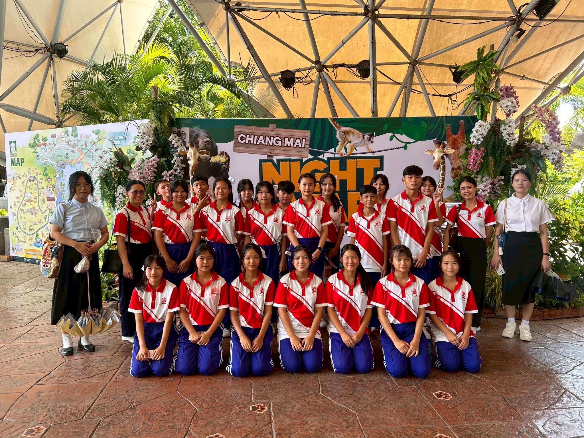 On Friday, September 5th, 2025, the Foreign Languages Department (Chinese) of Sansaiwittayakom School took the CEP students in Grade 8 (Class 2/9) to participate in a capacity–building activity at Wan Li Tong Language School. The students learned Chinese language skills with a native Chinese instructor and practiced Chinese cultural paper–cutting art. Afterwards, they went on a field trip to the Night Safari, where they also practiced using Chinese to introduce various animals.