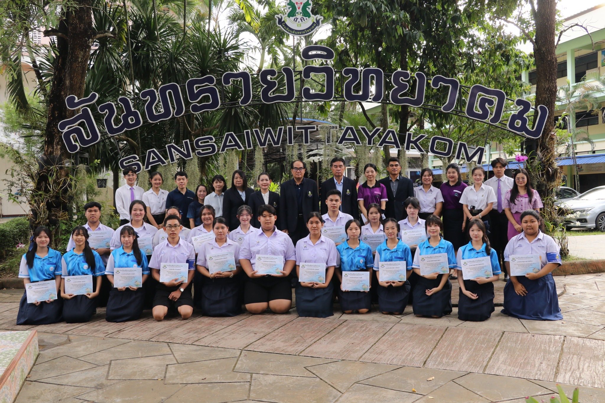 On Thursday, September 11th, 2025 Mr. Neramit Jaikaew, together with Mr. Rungroj Nekham, Deputy Directors of Sansaiwittayakom School, represented the school in congratulating and presenting certificates to students who won awards in the “Outstanding Social Innovation Contest, Academic Year 2025” for both lower and upper secondary levels. The event was organized by the Social Studies, Religion, and Culture Department of Sansaiwittayakom School.