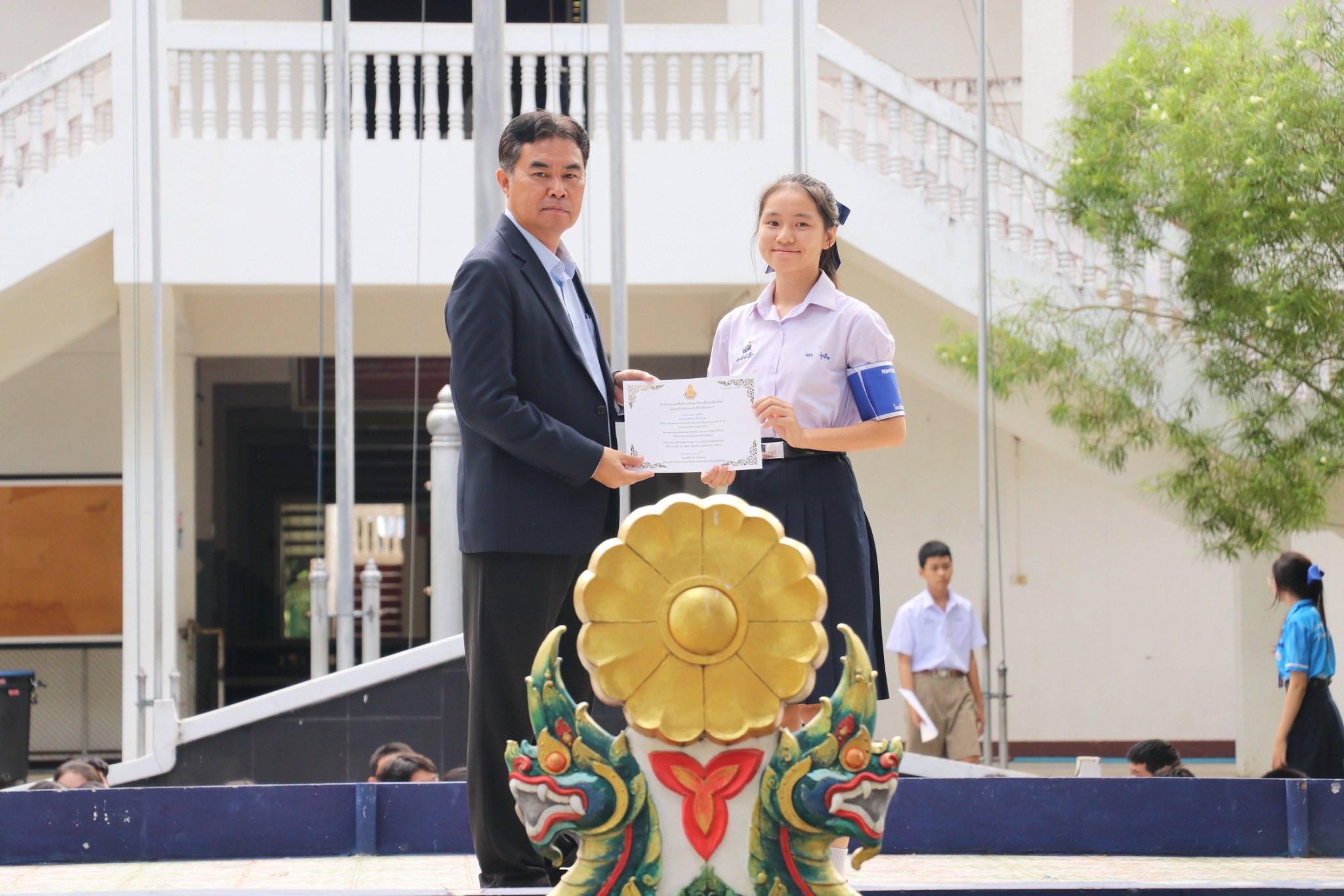 On Thursday, September 11th, 2025 Mr. Nikorn Kaewkhamdee, Director of Sansaiwittayakom School, congratulated and presented an award to Ms. Nuan Rungreung on the occasion of winning 4th Place at the Chiang Mai Secondary Educational Service Area in the Thai Language Skills Competition on “Reading for Main Ideas in the PISA Style” for the upper secondary level.