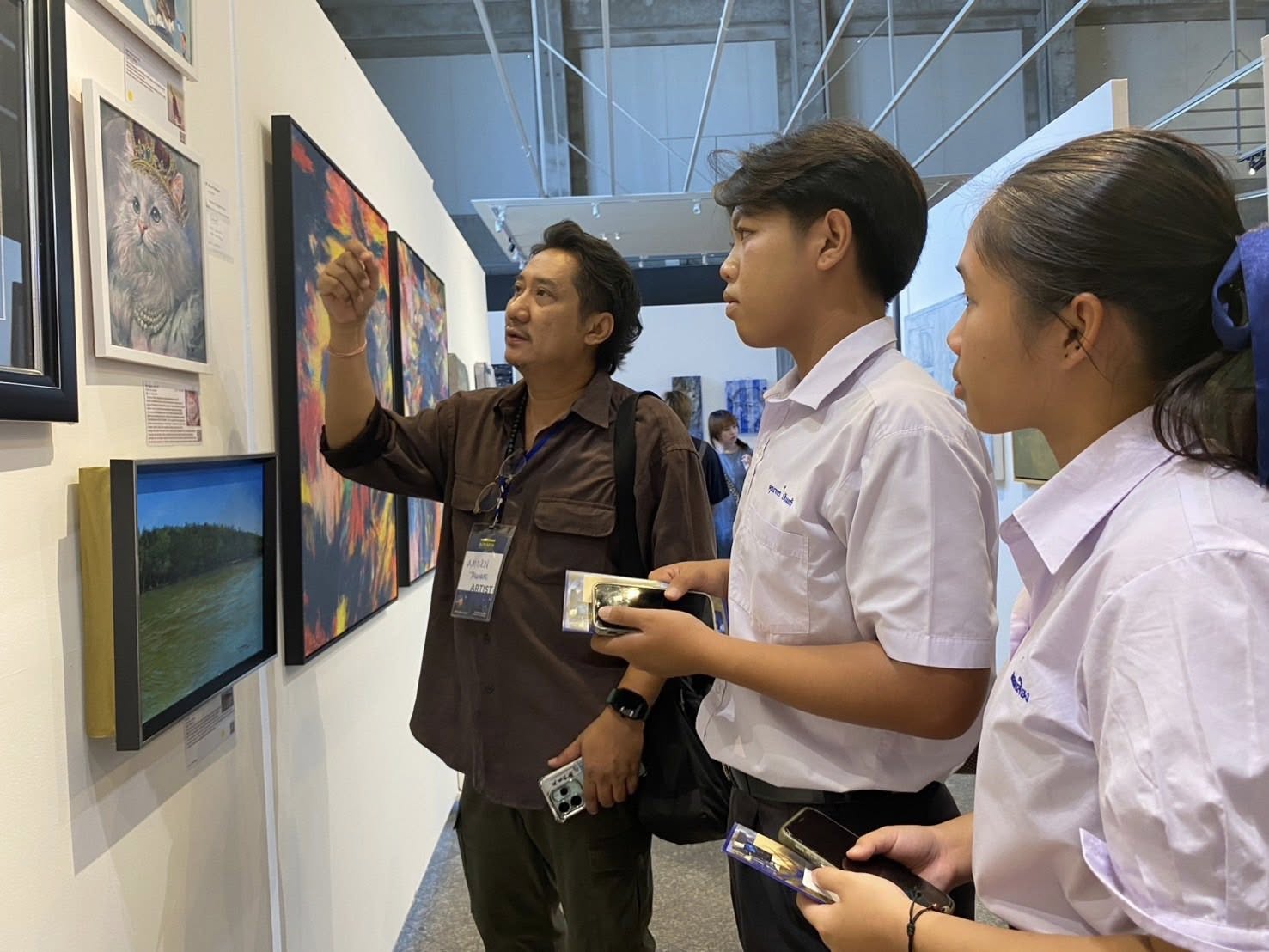 On February 12, 2026, the Art Learning Group of Sansaiwittayakom School led Mathayom Suksa 5–6 students who are interested in art to participate in an out-of-classroom learning activity through the works of Thai and international artists at “KOSMOS: Between Spirit & Matter,” organized by Weave Artisan Society. This event was the 2nd Contemporary Art Festival, featuring artworks by 70 Thai and international artists across various disciplines such as painting, digital art, sculpture, and installation.