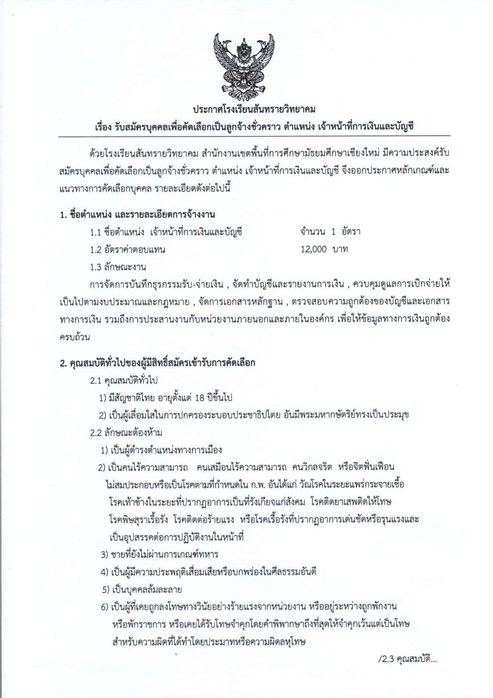 ประกาศ รับสมัครเพื่อคัดเลือกบุคคลเป็นลูกจ้างชั่วคราวตำแหน่ง เจ้าหน้าที่การเงินและบัญชีNew