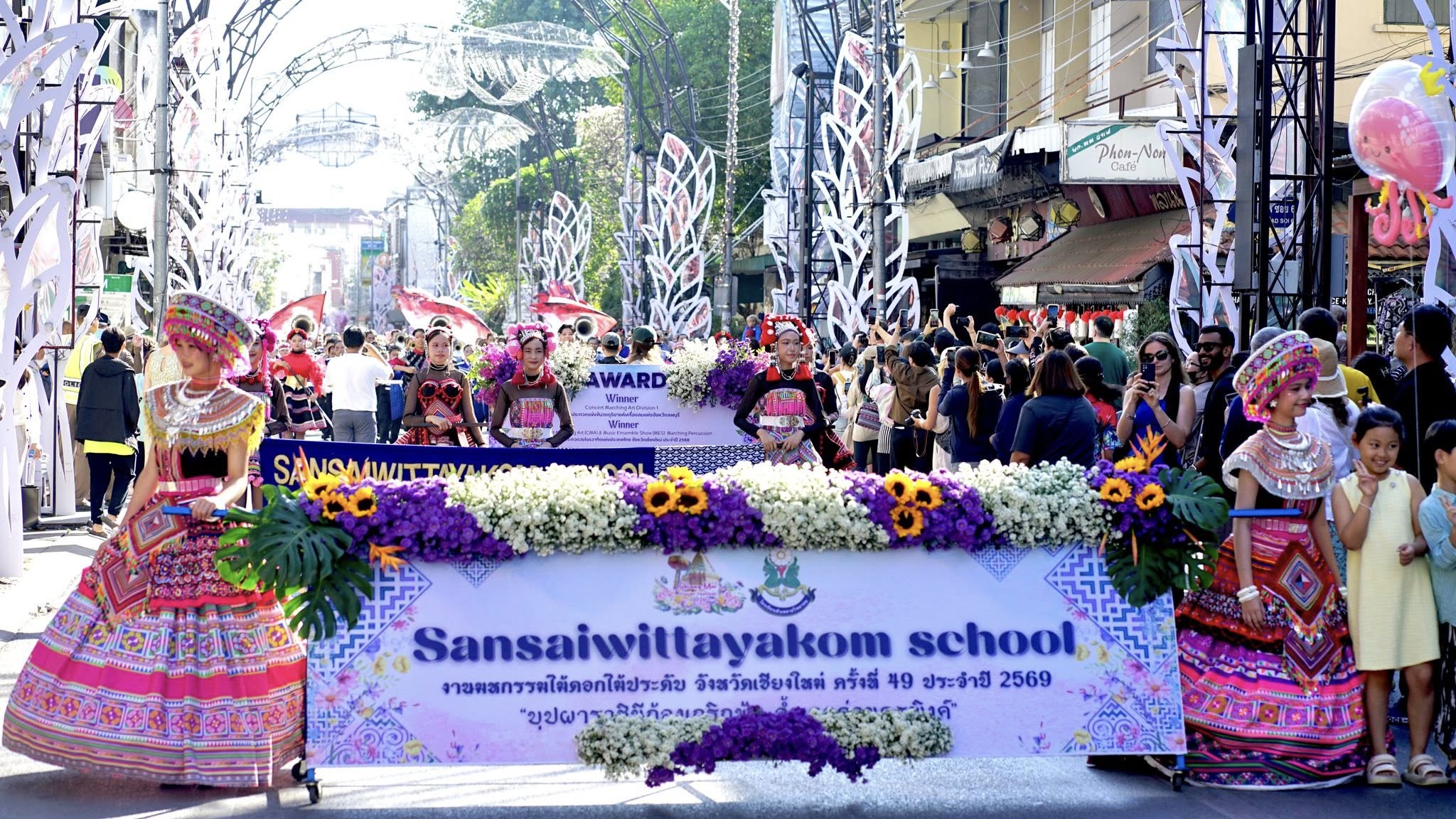 On February 14, 2026, the marching band of Sansaiwittayakom School was honored to perform at the 49th Chiang Mai Flower Festival 2026, under the theme “The Queen of Flowers Resonates Across the Sky, Celebrating the Splendor of Nakhon Ping.”