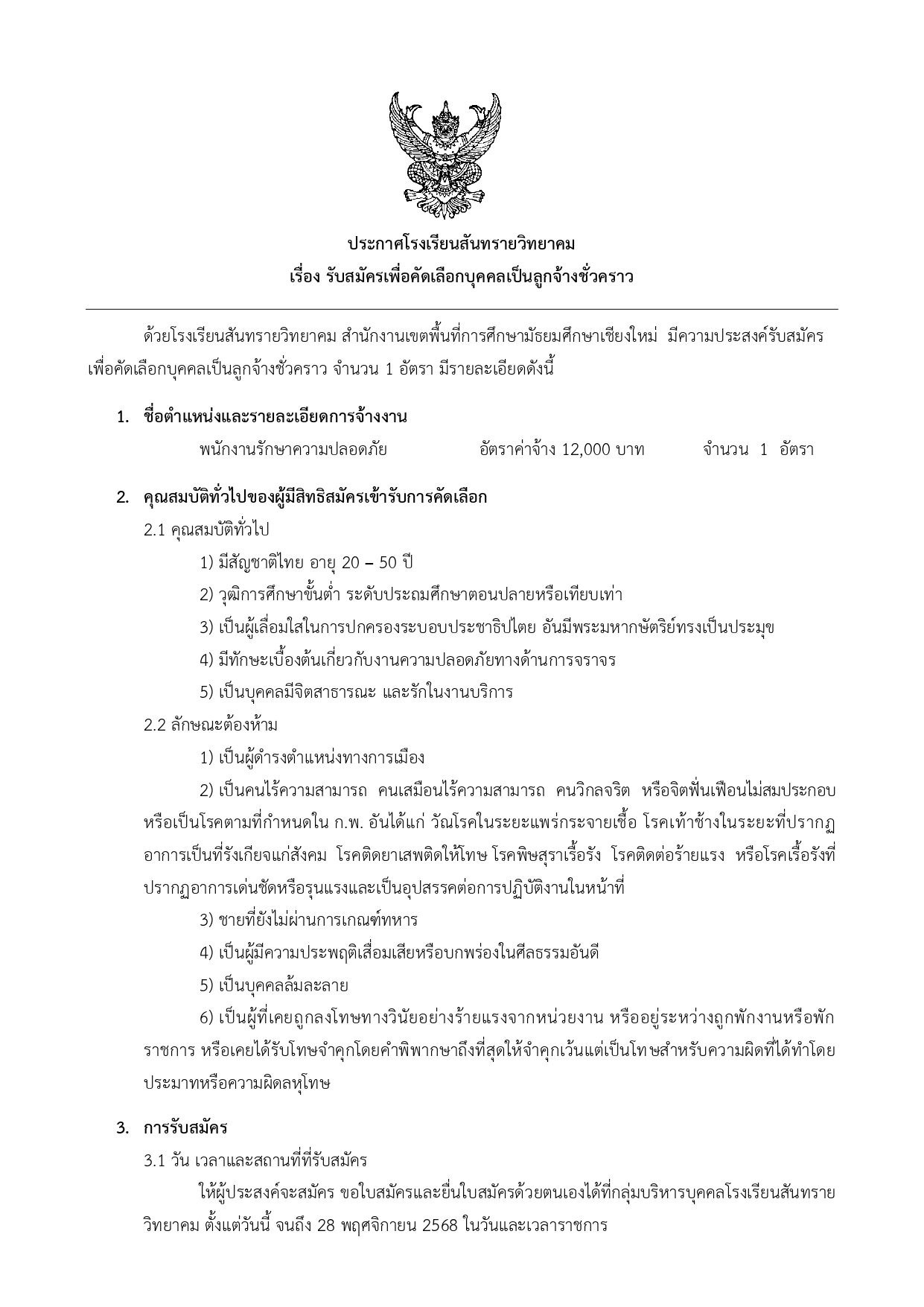 ประกาศ รับสมัครเพื่อคัดเลือกบุคคลเป็นลูกจ้างชั่วคราวตำแหน่ง พนักงานรักษาความปลอดภัยประกาศ รับสมัครเพื่อคัดเลือกบุคคลเป็นลูกจ้างชั่วคราวตำแ […]Read more→