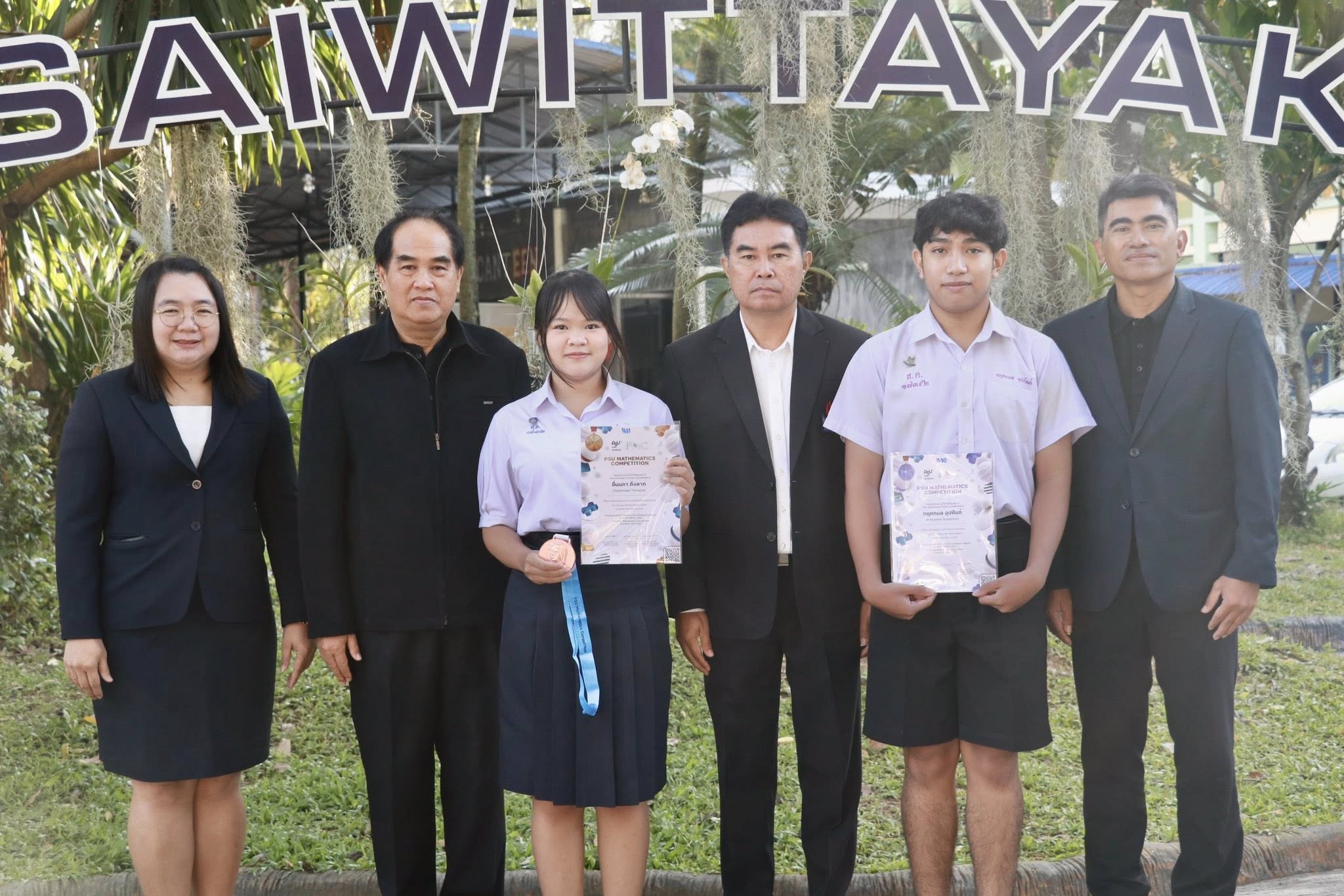 วันที่ 27 พฤศจิกายน 2568 นายนิกร แก้วคำดี ผู้อำนวยการโรงเรียนสันทรายวิทยาคม เป็นตัวแทนแสดงความยินดีและมอบเกียรติบัตรแก่นักเรียนที่ได้รับรางวัลในการแข่งขันคณิตศาสตร์ โดย มหาวิทยาลัยสงขลานครินทร์ ปีการศึกษา 2568 (PSU Mathematics Competition 2025 (PMC 2025)) ในระดับประเทศ🥇🤍💙 ดังนี้ 🏅รางวัลชมเชย ระดับมัธยมตอนปลาย นายกฤศกล อุปถัมภ์ 🏅รางวัลเหรียญทองแดง นาวสาวชื่นนภา ถึงลาภ On November 27, 2025, Mr. Nikorn Kaewkamdee, The Director of Sansaiwitthayakhom School, represented the school in congratulating and certificates awarding to the students who received awards in the PSU Mathematics Competition 2025 (PMC 2025), organized by Songkla University at the national level. 🇹🇭🥇🤍💙 🏅 Consolation Prize (Upper Secondary Level) • Mr. Kritsakon Uppatham 🏅 Bronze Medal • Miss Chuennapa Thuenglap